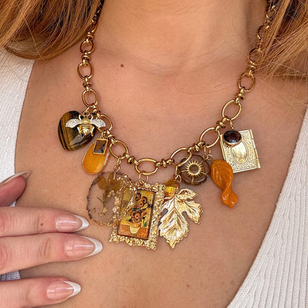 Say bonjour to your new favorite statement piece. These ready-to-ship charm necklaces are handmade with love and layered in luxe—every chain and charm is 18k gold plated and thoughtfully arranged into one-of-a-kind designs. From croissants to crowns, pearls to portraits, each necklace tells its own tiny story.